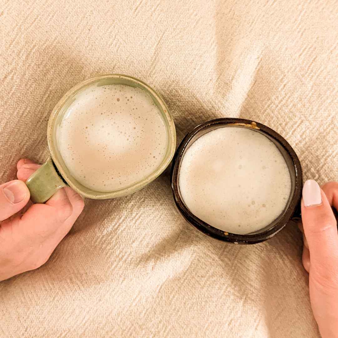 3. Heat up 1/2 a cup of your favourite milk and pour over top of the tea. Enjoy!
